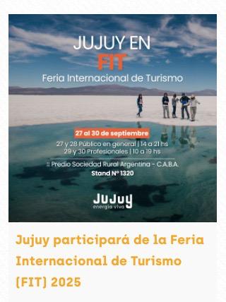 La provincia de Jujuy confirmó su participación en la Feria Internacional de Turismo (FIT) que se realizará del 27 al ...